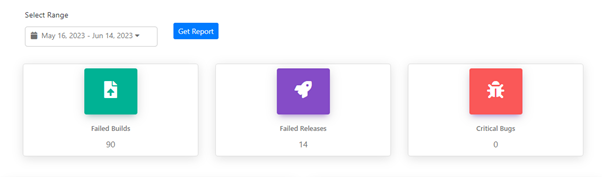 In this report, we've highlighted three other critical metrics: Failed Builds, Failed Releases, and Critical Bugs. These key indicators will help you evaluate the project's overall health and identify areas that may need attention or improvement. The report page will display important information, starting with data from the last 30 days. This allows you to quickly see how the project has been performing recently.